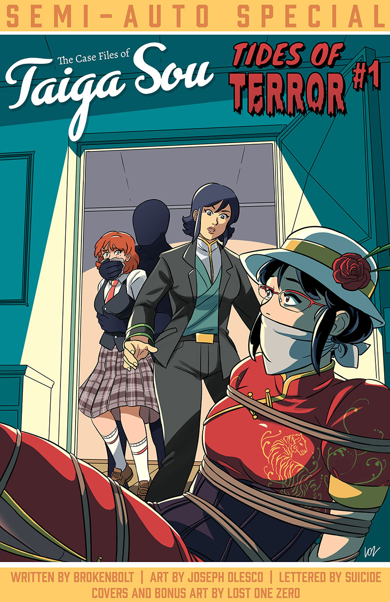 Get ready for a blast from the past! In this 33-page murder mystery, we go back in time to see Yumi’s mom Taiga in her prime as amateur sleuth and danger-prone damsel. In the first of three chapters, she finds herself invited to the island mansion of the MacByrne family – unknowing of the danger lurking there. Can Taiga survive the… TIDES OF TERROR?
